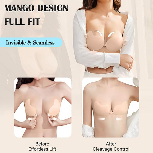 2 Pairs Reusable Sticky Bra Ultra Thin with 2 Pairs Nipple Covers, Adhesive Bra, Strapless Bras for Women, Invisible Push Up Silicone Bra for Backless Dress Top