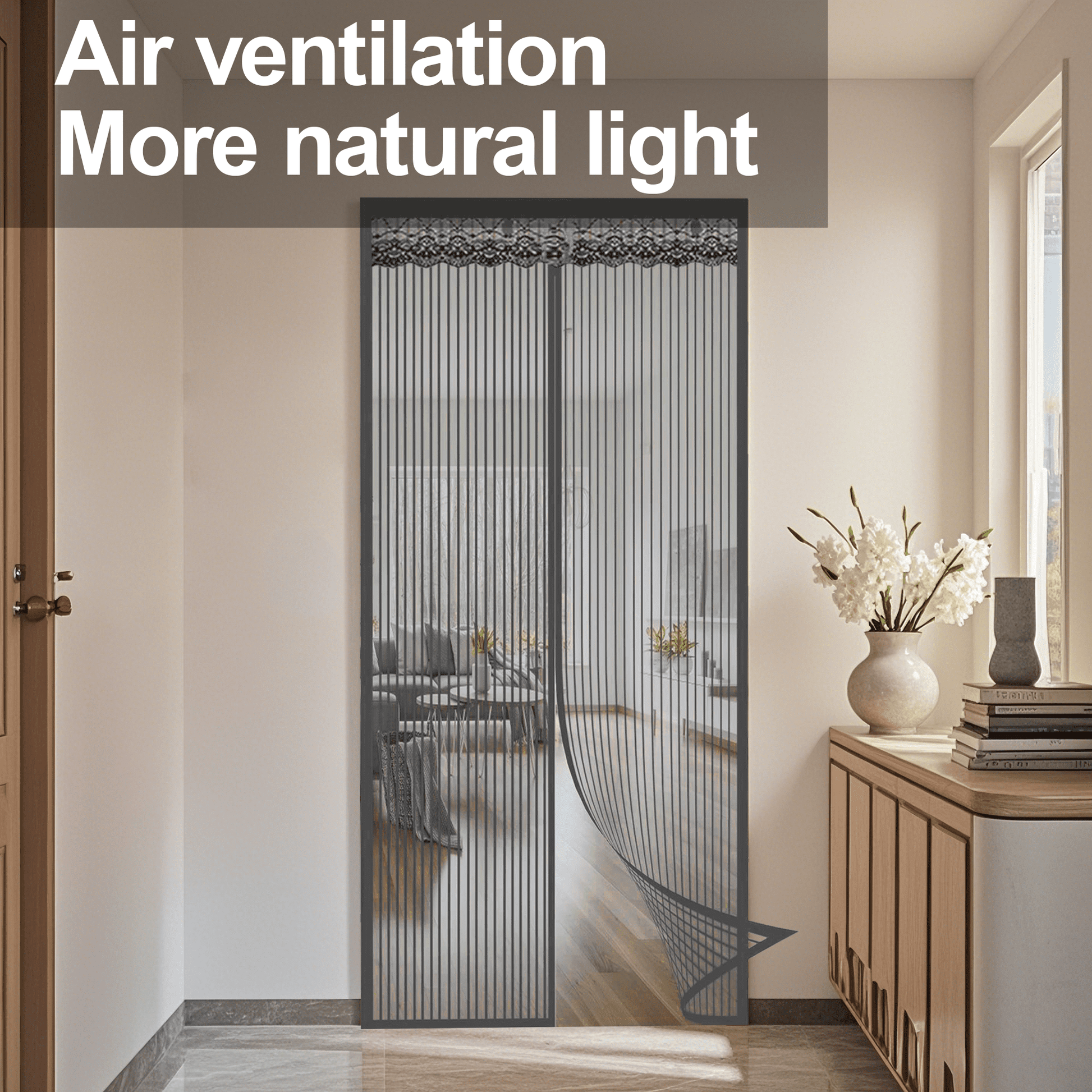 - Reinforced Polyester Mesh: Crafted with tear-resistant polyester mesh and double-stitched edges, this screen door resists wear from daily use. Ideal for homes with active pets or children, it maintains durability without sacrificing airflow.