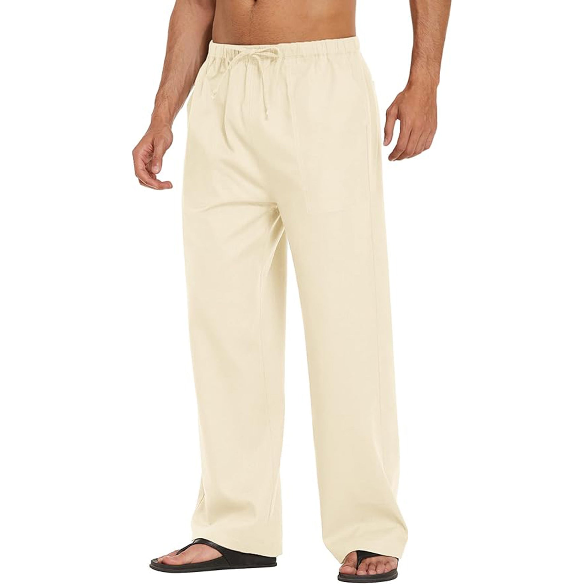 Breathable Linen-Cotton Blend: Made from a lightweight and breathable linen-cotton blend, these pants are perfect for staying cool and comfortable during warmer weather or casual outings.